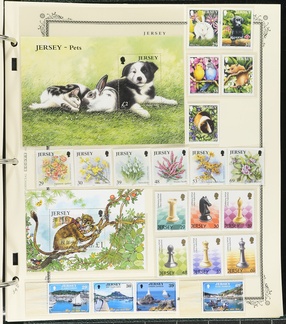 Lovely comprehensive collection of never hinged Jersey in a Scott Specialty album with slipcase, 1941-2005. This lovely collection ranges from Scott #N1/1161, including several souvenir sheets, booklets, and postage due issues. A spot check indicated many sets, booklets, and souvenir sheets, cataloguing $5 to $15 each. A lovely collection and in a classy album with hingeless album pages, and should be continued until completion. Very fine. 2026 Scott US$1,614.00 =