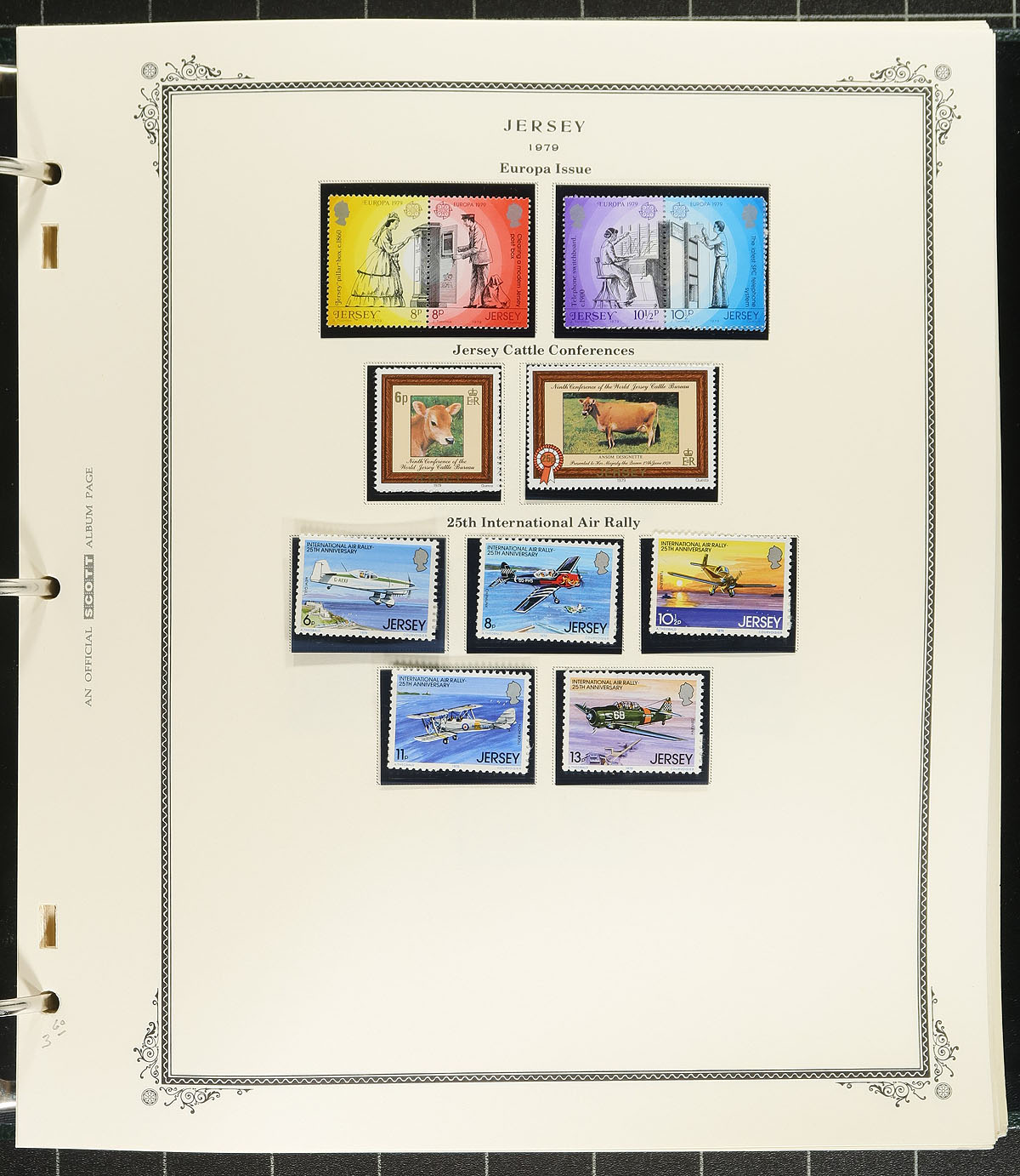 Lovely comprehensive collection of never hinged Jersey in a Scott Specialty album with slipcase, 1941-2005. This lovely collection ranges from Scott #N1/1161, including several souvenir sheets, booklets, and postage due issues. A spot check indicated many sets, booklets, and souvenir sheets, cataloguing $5 to $15 each. A lovely collection and in a classy album with hingeless album pages, and should be continued until completion. Very fine. 2026 Scott US$1,614.00 =