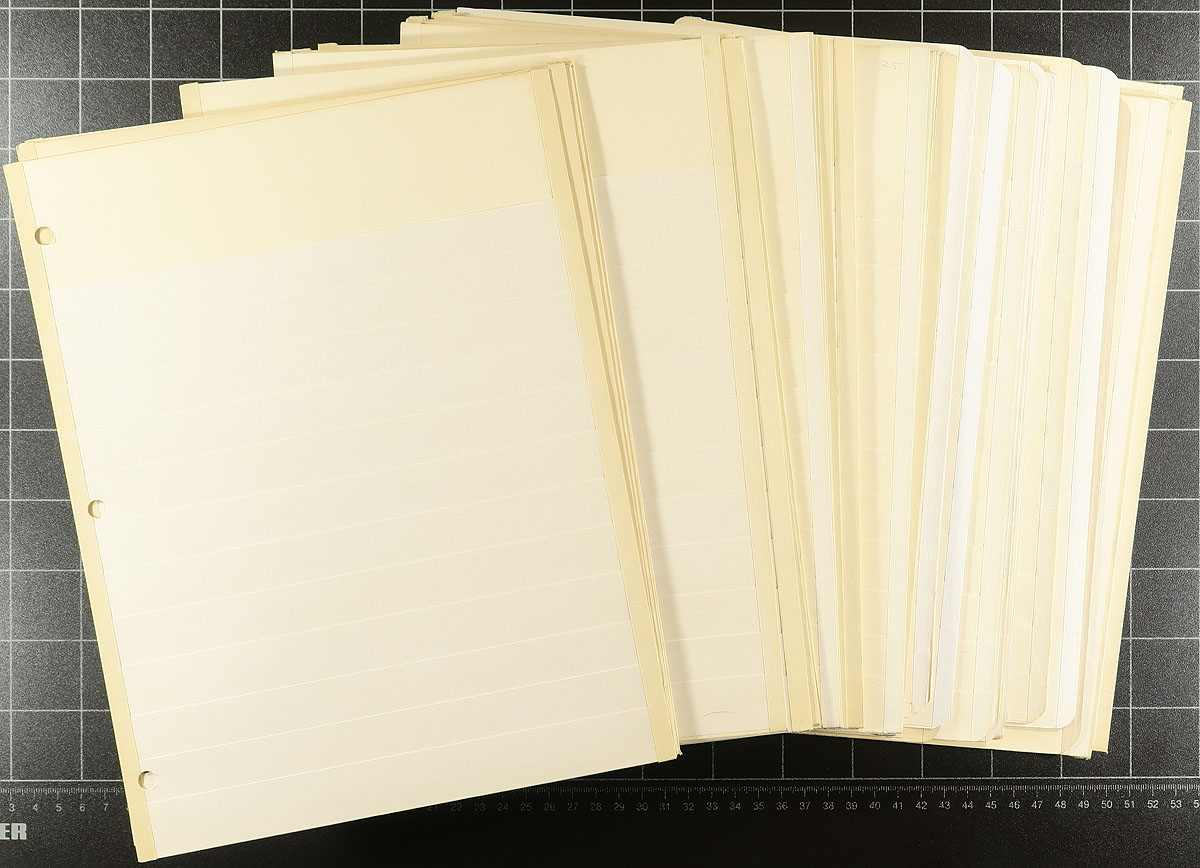 Manila Stocksheets. A small box containing 100 lightly / moderately used stocksheets. The standard 3-ring hole punch pages are ready to be given a binder and live another day. The "new" retail cost on these is over $150.00. A very cost-effective way to store your duplicates without having to pay retail for them. Estimate =