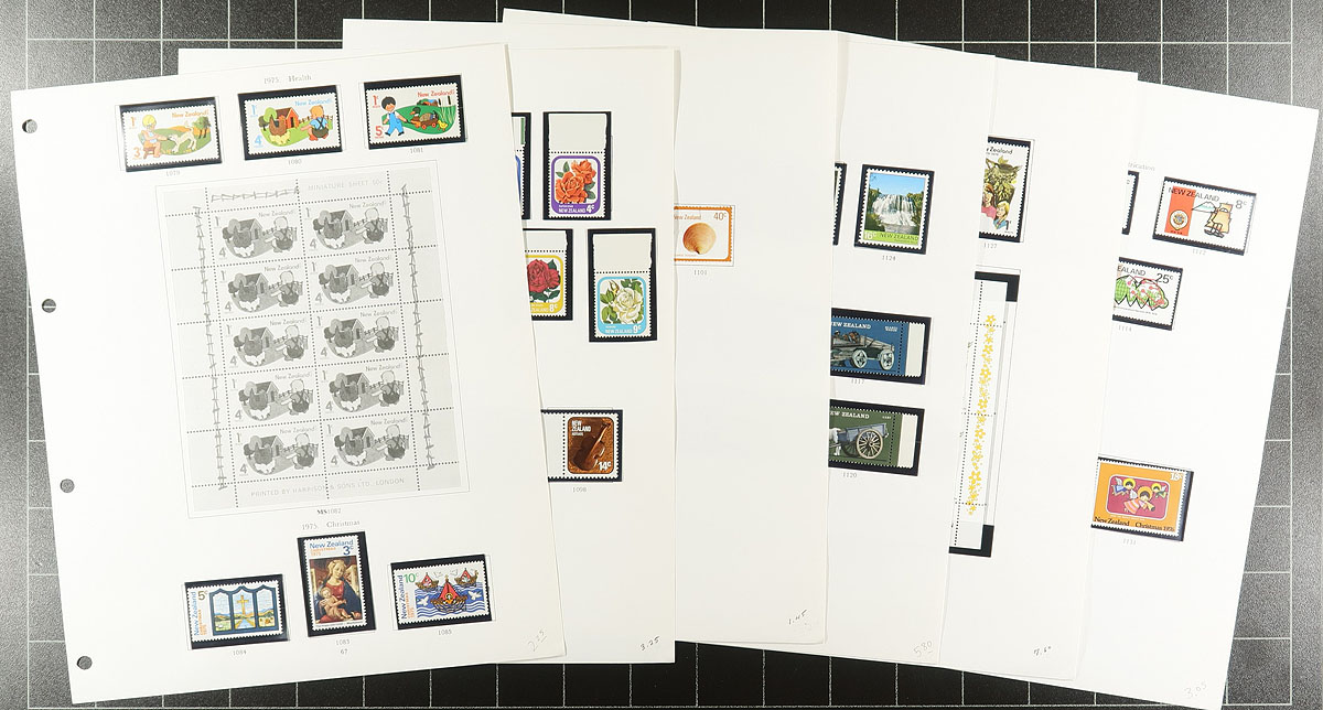Mint and used collection of 1940-1979 New Zealand, arranged in a Stanley Gibbons padded album. Fairly complete for the period, with the mint being a combination of hinged / never hinged (expect most to be Hinged). Includes 18 complete semi-postal panes of 6, both mint and CDS cancelled used. Owner's 2021 Scott US$536.45 =