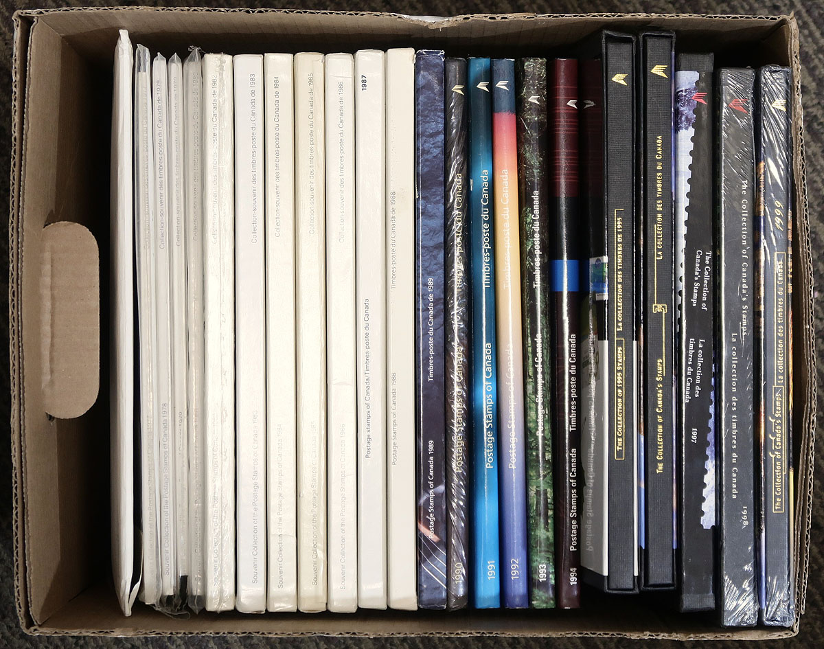 Annual Collections for 1976 to 1999. VF condition Annual Collections covering the years inclusively 1976 through 1999. These Canada Post yearbooks contain the mint NH stamps, souvenir sheets and booklets for these years. A high-quality group of these impressive and informative publications. Total face value of the mint NH stamps, panes and souvenir sheets in the 23 volumes is $510.27. 2025-2026 Unitrade =