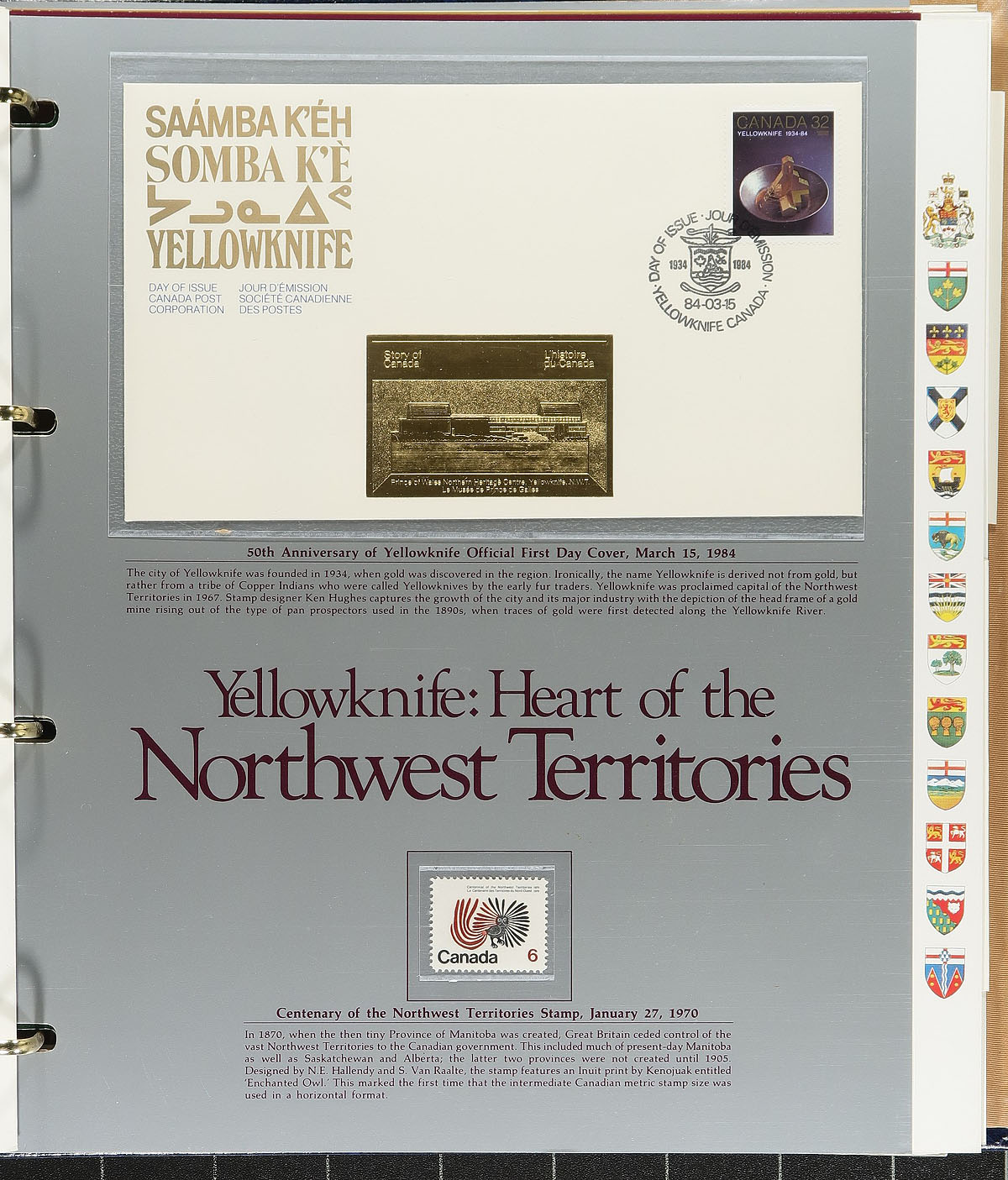 Eighty individually sold pages from the "Story of Canada" First Day Covers and mint stamp collection produced between 1982 and 1989. All housed in four deluxe slipcased albums with reams of additional information on all the issues that have been included in the series. All of the FDCs have additional embossed gold foil cachets unique to this series. Huge new issue cost and few of the sets we see are complete like this one. Estimate =