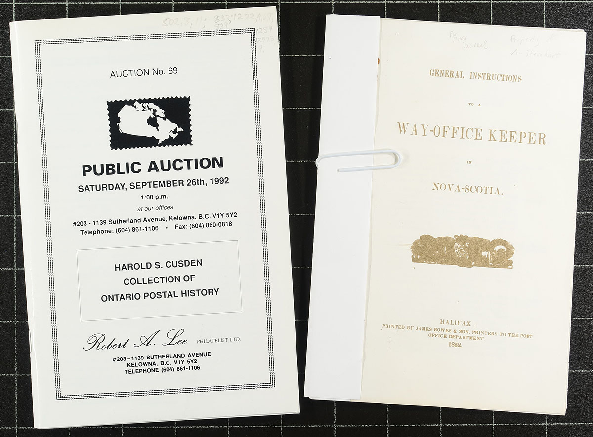 Literature. A mostly filled bankers box, filled with an array of literature, all within the scope of collecting Postal History. A total of 40 items, including several better books, and some examples of the seldom seen "Post West" journal. Too many items to list, so please take a look through the pictures to appreciate the scope of the group. Estimate =