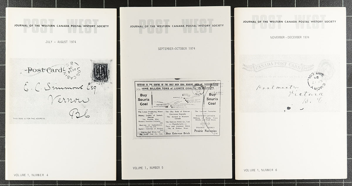 Literature. A mostly filled bankers box, filled with an array of literature, all within the scope of collecting Postal History. A total of 40 items, including several better books, and some examples of the seldom seen "Post West" journal. Too many items to list, so please take a look through the pictures to appreciate the scope of the group. Estimate =