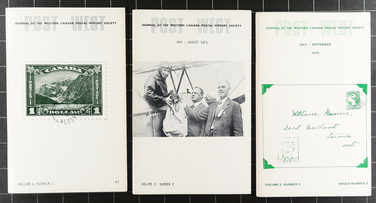 Literature. A mostly filled bankers box, filled with an array of literature, all within the scope of collecting Postal History. A total of 40 items, including several better books, and some examples of the seldom seen "Post West" journal. Too many items to list, so please take a look through the pictures to appreciate the scope of the group. Estimate =