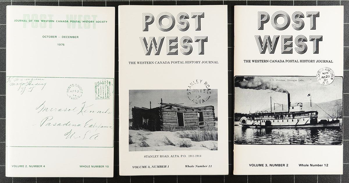 Literature. A mostly filled bankers box, filled with an array of literature, all within the scope of collecting Postal History. A total of 40 items, including several better books, and some examples of the seldom seen "Post West" journal. Too many items to list, so please take a look through the pictures to appreciate the scope of the group. Estimate =
