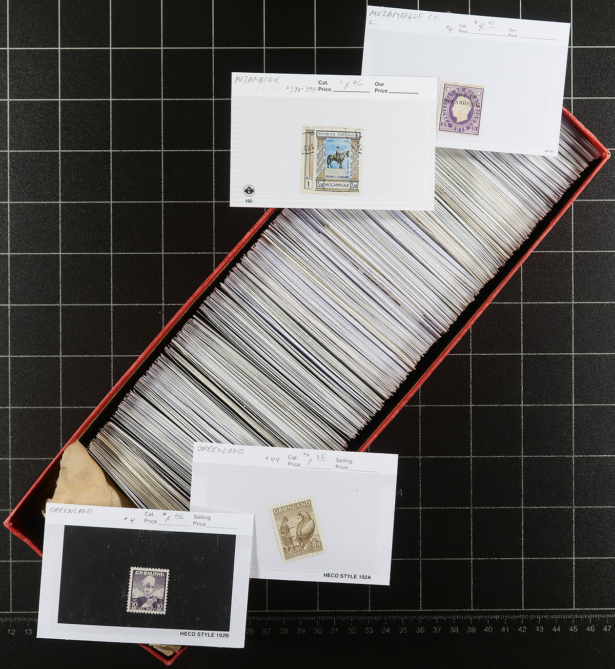 Red Box Bonanza. A group of four dealer "red boxes" stuffed with "102" cards from around the globe. The owner nots that each box contains about 800x "102" cards (3200 "102" cards in total), with a conservative average "102" card catalogue value of $1.50, making for an estimate US$4800.00 of catalogue value! Add on to that, that the bulk of the work in identification is already one. Estimate =