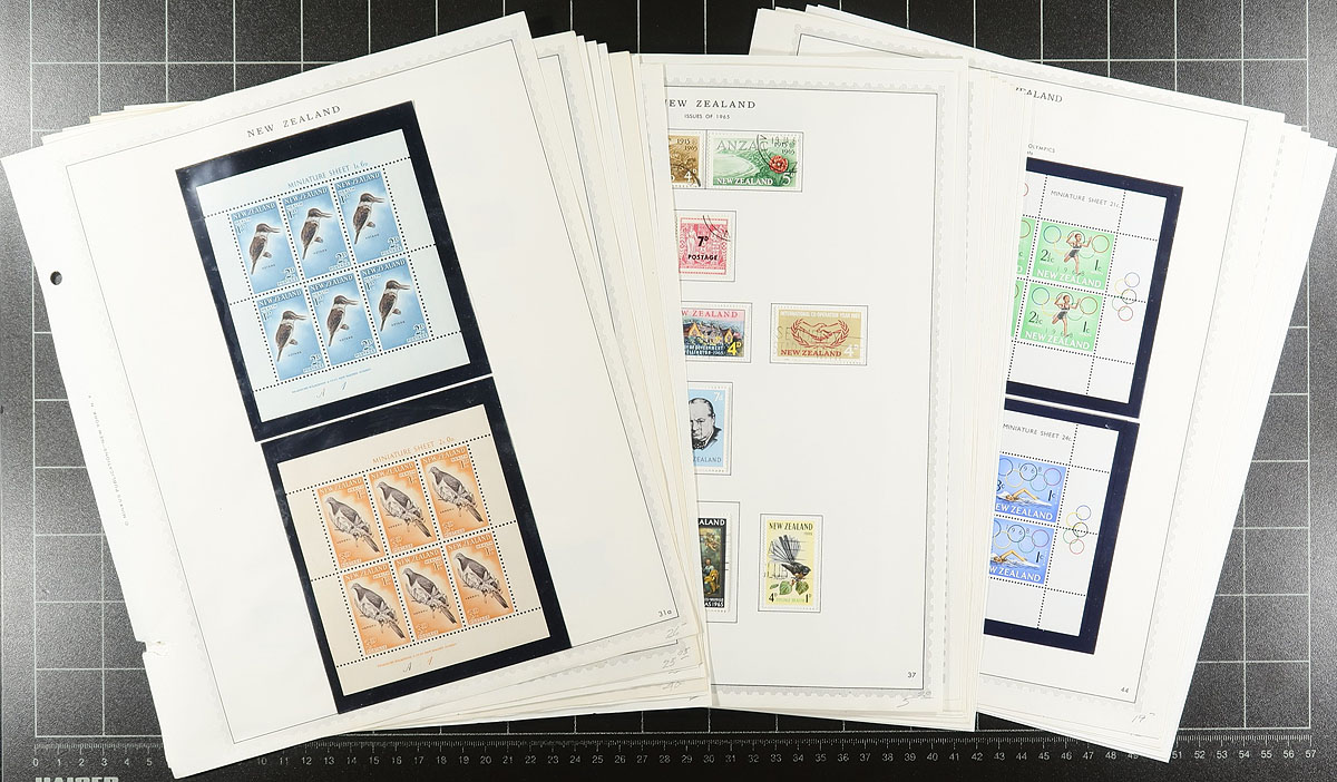 British Commonwealth Boxed Delight. A medium size both, containing 5 small blue stockbooks containing 1937 Coronation mint stock, with singles and blocks. There is also other Omnubus issues noted, including Freedom from Hunger, International Co-Op Year, International Telecom Union x2, UNESCO, Red Cross and WHO Headquarters. These books are complimented by a group of New Zealand on pages, India Revenues, "odds and ends" (as described by the consignor), "102" cards, glassines, manila pages etc. A fun sort ahead here. Estimate =
