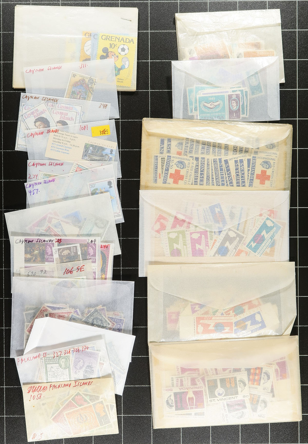 British Commonwealth Boxed Delight. A medium size both, containing 5 small blue stockbooks containing 1937 Coronation mint stock, with singles and blocks. There is also other Omnubus issues noted, including Freedom from Hunger, International Co-Op Year, International Telecom Union x2, UNESCO, Red Cross and WHO Headquarters. These books are complimented by a group of New Zealand on pages, India Revenues, "odds and ends" (as described by the consignor), "102" cards, glassines, manila pages etc. A fun sort ahead here. Estimate =