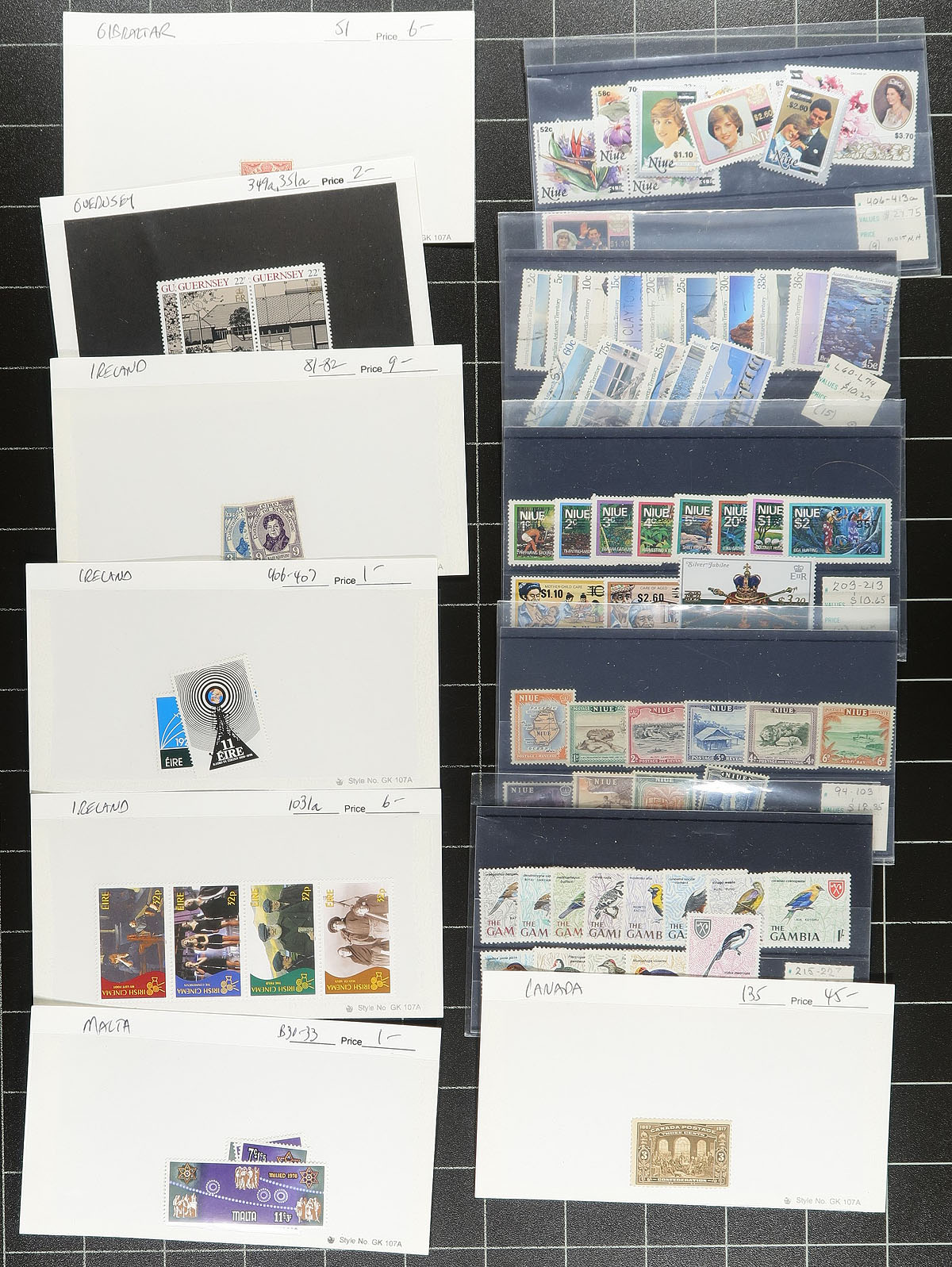 British Commonwealth Boxed Delight. A medium size both, containing 5 small blue stockbooks containing 1937 Coronation mint stock, with singles and blocks. There is also other Omnubus issues noted, including Freedom from Hunger, International Co-Op Year, International Telecom Union x2, UNESCO, Red Cross and WHO Headquarters. These books are complimented by a group of New Zealand on pages, India Revenues, "odds and ends" (as described by the consignor), "102" cards, glassines, manila pages etc. A fun sort ahead here. Estimate =