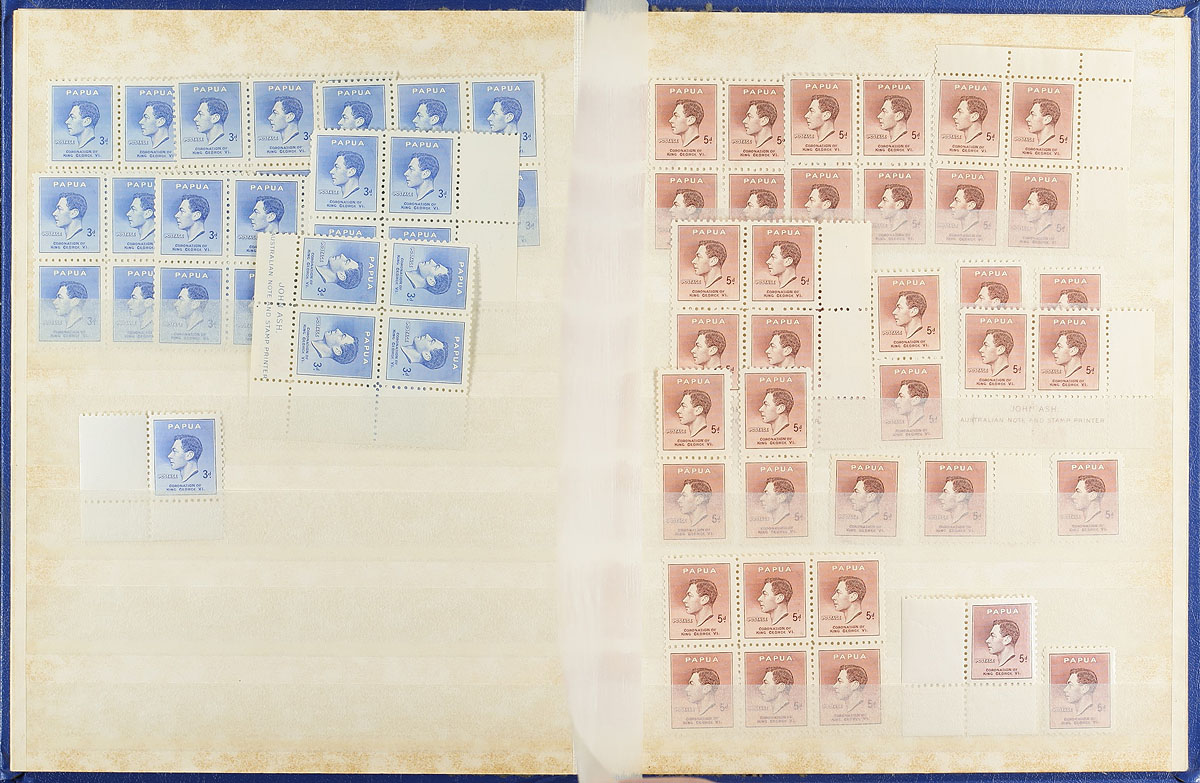 British Commonwealth Boxed Delight. A medium size both, containing 5 small blue stockbooks containing 1937 Coronation mint stock, with singles and blocks. There is also other Omnubus issues noted, including Freedom from Hunger, International Co-Op Year, International Telecom Union x2, UNESCO, Red Cross and WHO Headquarters. These books are complimented by a group of New Zealand on pages, India Revenues, "odds and ends" (as described by the consignor), "102" cards, glassines, manila pages etc. A fun sort ahead here. Estimate =