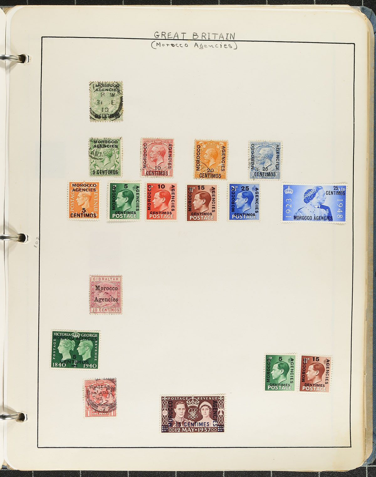 British Commonwealth Boxed Delight. A medium size both, containing 5 small blue stockbooks containing 1937 Coronation mint stock, with singles and blocks. There is also other Omnubus issues noted, including Freedom from Hunger, International Co-Op Year, International Telecom Union x2, UNESCO, Red Cross and WHO Headquarters. These books are complimented by a group of New Zealand on pages, India Revenues, "odds and ends" (as described by the consignor), "102" cards, glassines, manila pages etc. A fun sort ahead here. Estimate =