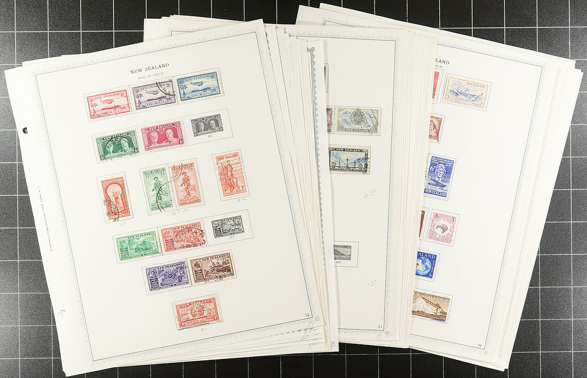 British Commonwealth Boxed Delight. A medium size both, containing 5 small blue stockbooks containing 1937 Coronation mint stock, with singles and blocks. There is also other Omnubus issues noted, including Freedom from Hunger, International Co-Op Year, International Telecom Union x2, UNESCO, Red Cross and WHO Headquarters. These books are complimented by a group of New Zealand on pages, India Revenues, "odds and ends" (as described by the consignor), "102" cards, glassines, manila pages etc. A fun sort ahead here. Estimate =