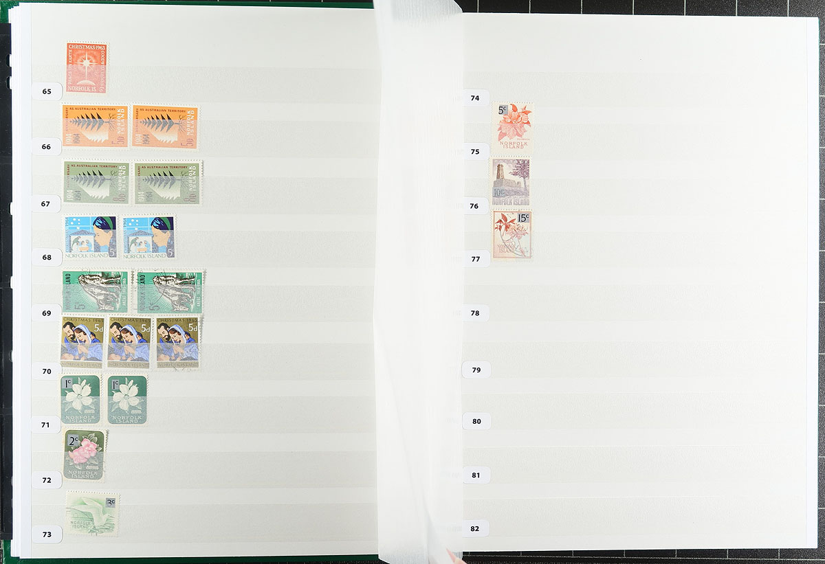 A mint (mostly) and used collector's assembly of Norfolk Islands, including #1-12 in blocks of four (these are MNH, but expect a mix of Hinged / Never Hinged throughout), all neatly identified as to Scott catalogue number and held in a like-new Lighthouse 64-page stockbook (white pages). Includes the owner's inventory list, outlining all items included. Consider the stockbook now retails for over $60.00 alone. Owner's 2021 Scott US$725.05 =