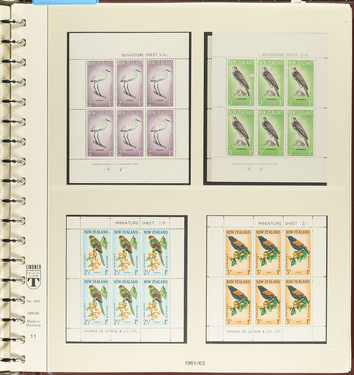A duo of collections, the first (Part A) being a lovely deluxe Linder Hingeless album (18-ring binder), containing a collection that ranges from the start of QEII (1953 Coronation) up to 1981. About 90% complete for the period, primarily mint (usually hinged earlier, NH later) and the odd used example. The second (Part B) is a mix mint/used 1967 to mid-1980's on "Seven Seas" printed pages. Includes the owner's detailed inventory list. Owner's 2021 Scott for Part A ($766.60) and Part B ($395.20). Total Owner's 2021 Scott US$1,161.80 =