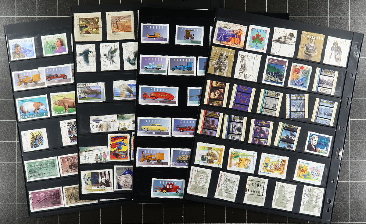 Large used collection of Canada 1859-2020, containing a few thousand stamps, neatly organized in roughly 55 double-sided Vario stock pages, housed in a thick binder. This collection has a little bit of everything including a few Small Queens, Jubilees, Leafs, Numerals, and continues with sets and partial sets of Edwards (full set), Quebecs (up to 7c), Admirals, Scrolls (up to 50c Bluenose), and complete sets of Arch, Pictorials, War and Peace issues. The collection continues with a good run of issues, including many modern used (8 double sided pages of post-2010 issues), along with a small selection of officials (perforated and overprinted), special delivery, revenues, and Newfoundland. A nice lot with duplication up to 10 for only a few issues. Online photos show a small sampling. Estimate =