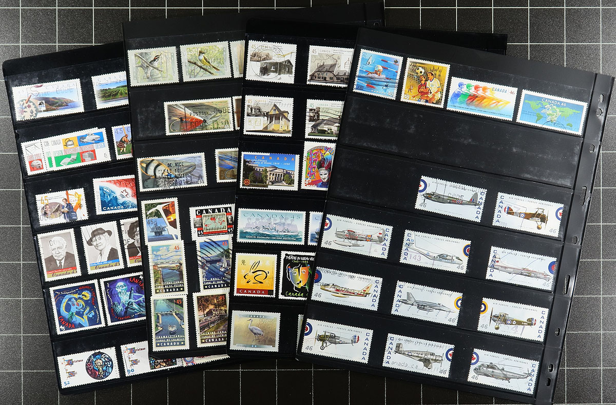 Large used collection of Canada 1859-2020, containing a few thousand stamps, neatly organized in roughly 55 double-sided Vario stock pages, housed in a thick binder. This collection has a little bit of everything including a few Small Queens, Jubilees, Leafs, Numerals, and continues with sets and partial sets of Edwards (full set), Quebecs (up to 7c), Admirals, Scrolls (up to 50c Bluenose), and complete sets of Arch, Pictorials, War and Peace issues. The collection continues with a good run of issues, including many modern used (8 double sided pages of post-2010 issues), along with a small selection of officials (perforated and overprinted), special delivery, revenues, and Newfoundland. A nice lot with duplication up to 10 for only a few issues. Online photos show a small sampling. Estimate =