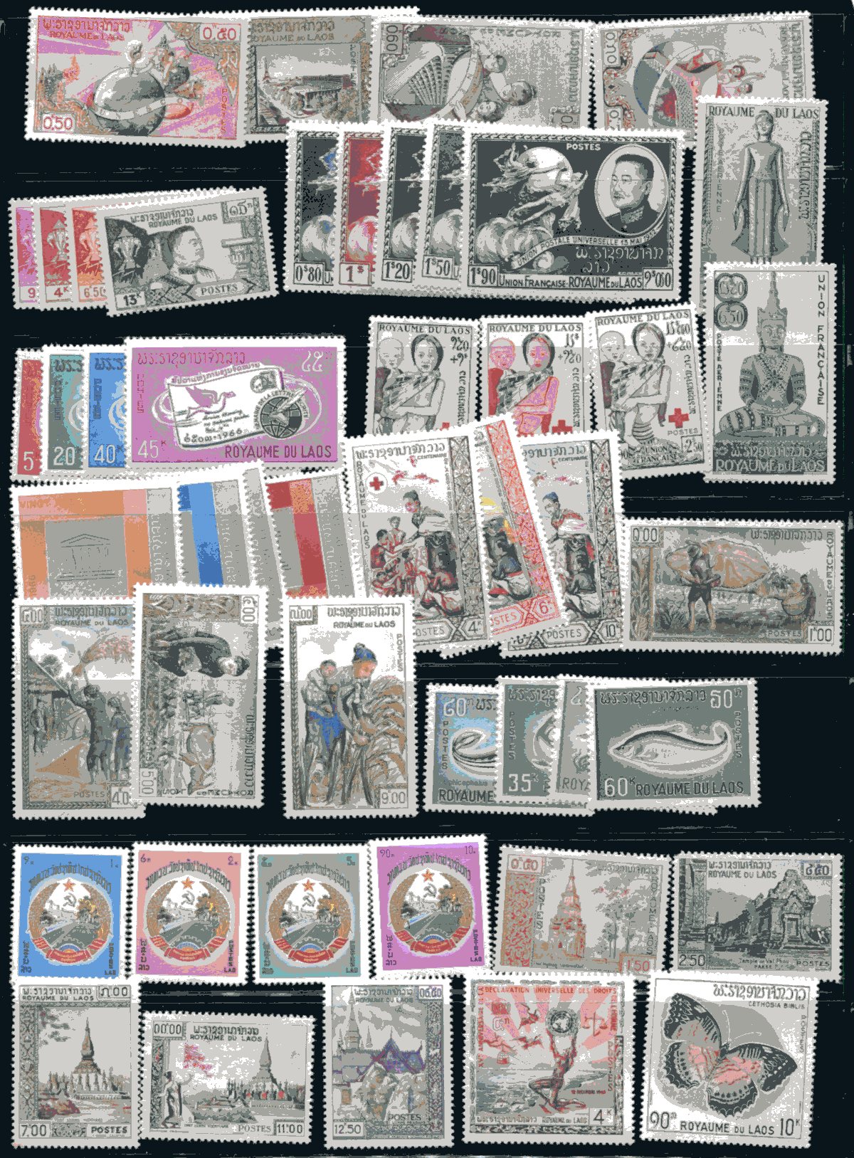 Attractive mint Never Hinged offering of mint Laos, with a touch of Indochina to round things out. Ranging from Scott #48 to 144, plus B9-B11, CP8-CP9 (see owner's detailed inventory list). Owner's 2024 Scott US$214.05 =