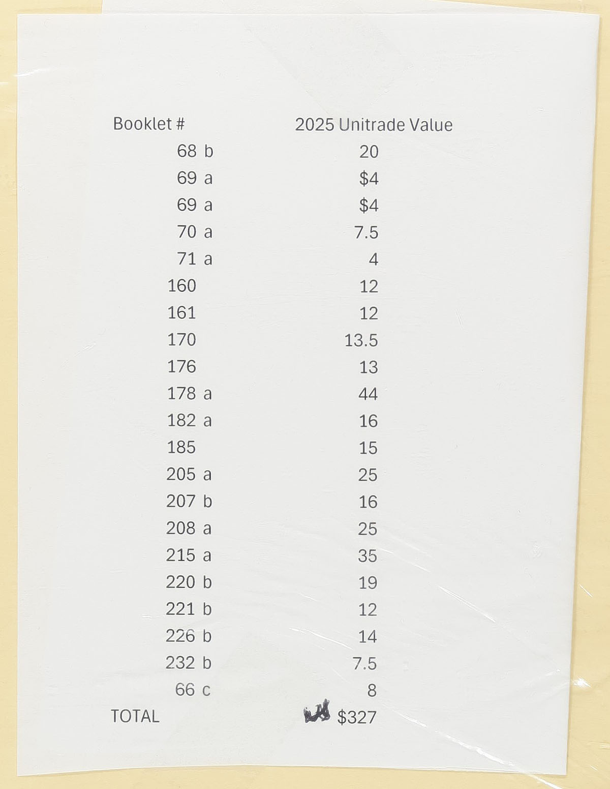 Catalogue Value or Estimate: $327.00