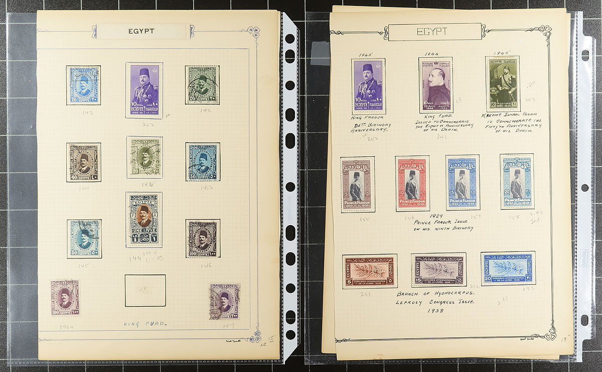 Mint and used assembly of 209 stamps, from the 1914-1961 period, including "back of the book" issues (Airmail, Officials, Semi-Postals, Occupation Stamp). All neatly mounted on old-time album pages. 2026 Scott US$245.20 =