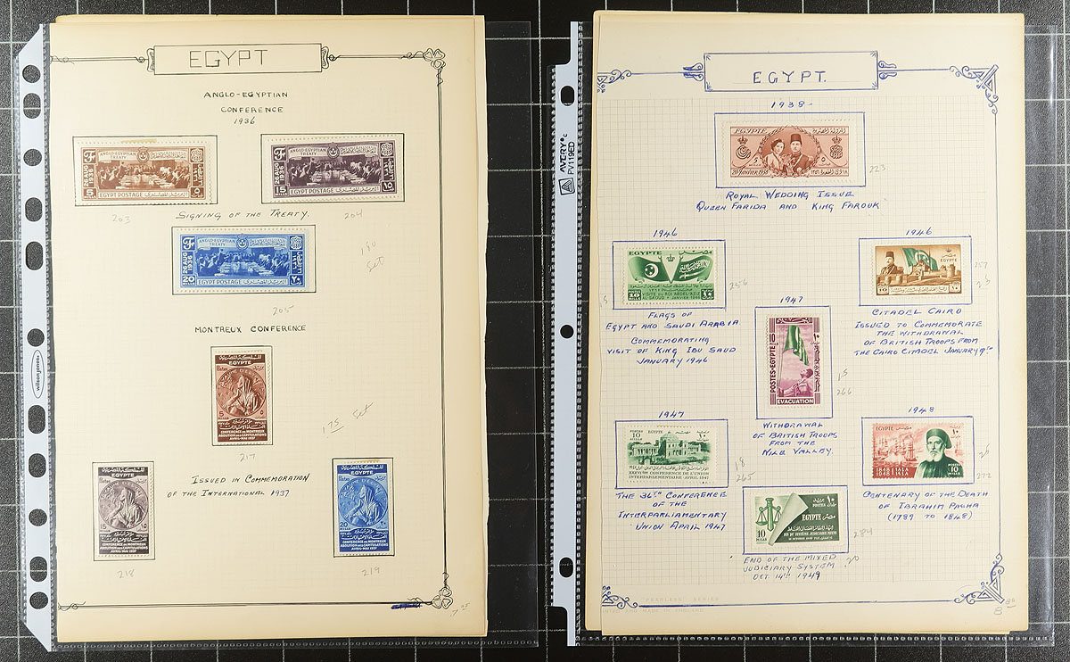 Mint and used assembly of 209 stamps, from the 1914-1961 period, including "back of the book" issues (Airmail, Officials, Semi-Postals, Occupation Stamp). All neatly mounted on old-time album pages. 2026 Scott US$245.20 =