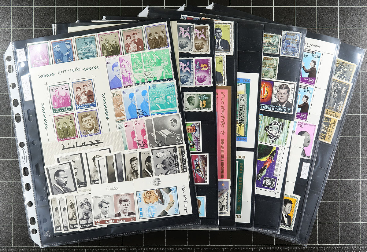 JFK - John F. Kennedy Topical Stamp Collection 1964-1965. A wide ranging mint Never Hinged selection of stamps / souvenir sheets from Ajman to Umm al Qiwain, all neatly arranged and identified on stockpages (including some items not listed in Scott, which the owner has identified with Michel catalogue if available).Total 2026 Scott US$696.05 =
