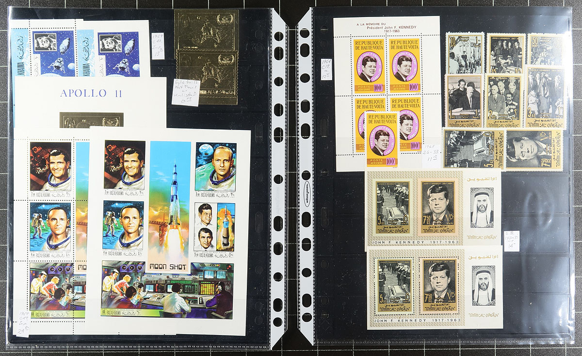 JFK - John F. Kennedy Topical Stamp Collection 1964-1965. A wide ranging mint Never Hinged selection of stamps / souvenir sheets from Ajman to Umm al Qiwain, all neatly arranged and identified on stockpages (including some items not listed in Scott, which the owner has identified with Michel catalogue if available).Total 2026 Scott US$696.05 =