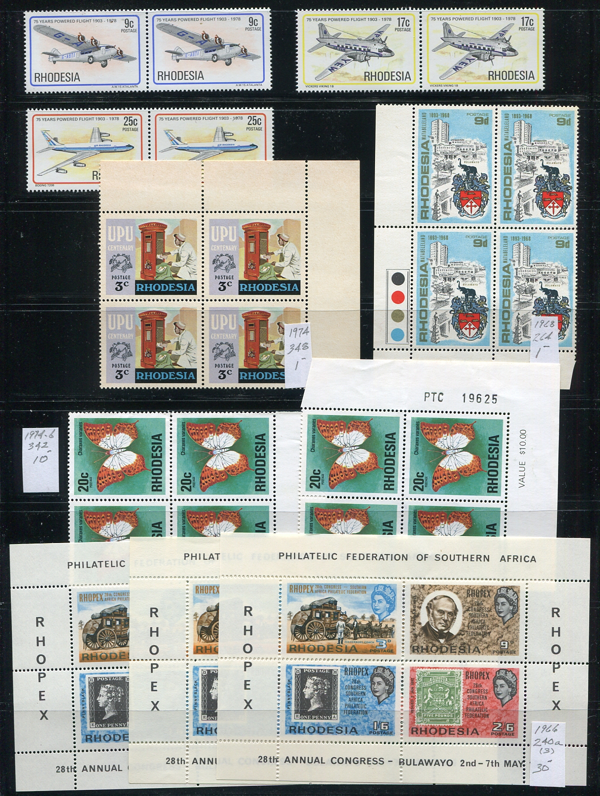A two-part mint collection, which includes Rhodesia & Nyasaland (1954-1963, #141/190, 57 stamps, cat US$246.20) and Rhodesia (1965-1978, #200/413, 116 stamps, cat US132.80). A combination of Lightly Hinged / Hinged items, with earlier items being Hinged, and most later Never Hinged. All neatly arranged and identified on stockpages. 2026 Scott US$379.00 =