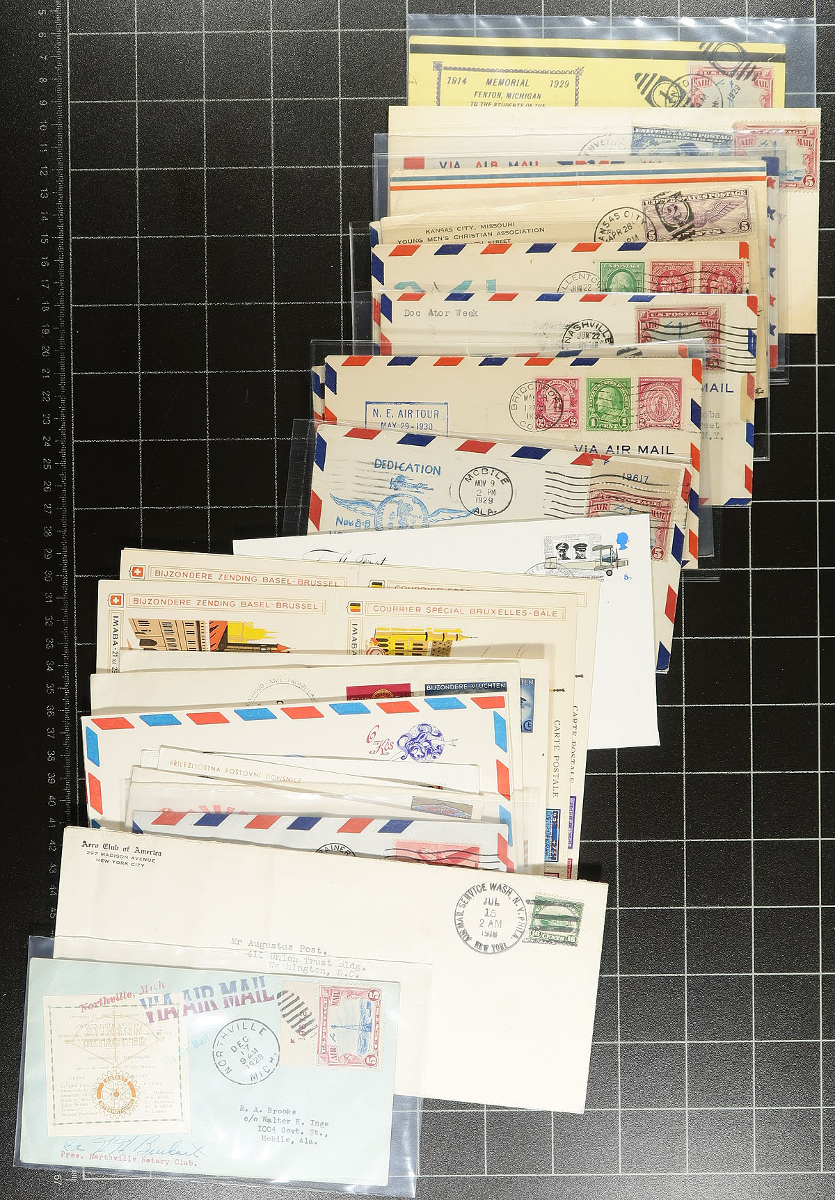 Airmail Covers. Nice group of roughly 125 Airmail covers, 1920's-1970's, including first flights, airport dedications, anniversary flights, helicopter and balloon flights, along with some pilot signed covers. We note better representation from the United States and Canada, along with some European and South America material. The lot also includes some interesting route maps from New Zealand giving town information, main routes and other points of interest. Some of the covers retail $10 to $20 each, making this a nice lot for collectors and dealers alike. Estimate =