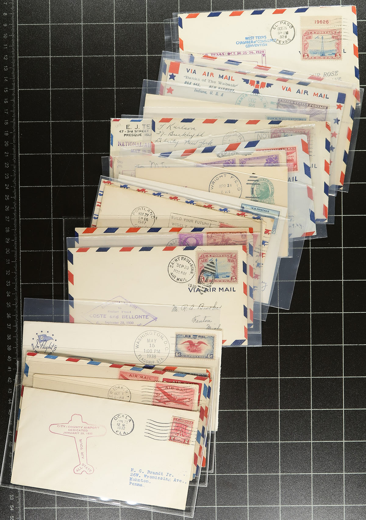 Airmail Covers. Nice group of roughly 125 Airmail covers, 1920's-1970's, including first flights, airport dedications, anniversary flights, helicopter and balloon flights, along with some pilot signed covers. We note better representation from the United States and Canada, along with some European and South America material. The lot also includes some interesting route maps from New Zealand giving town information, main routes and other points of interest. Some of the covers retail $10 to $20 each, making this a nice lot for collectors and dealers alike. Estimate =