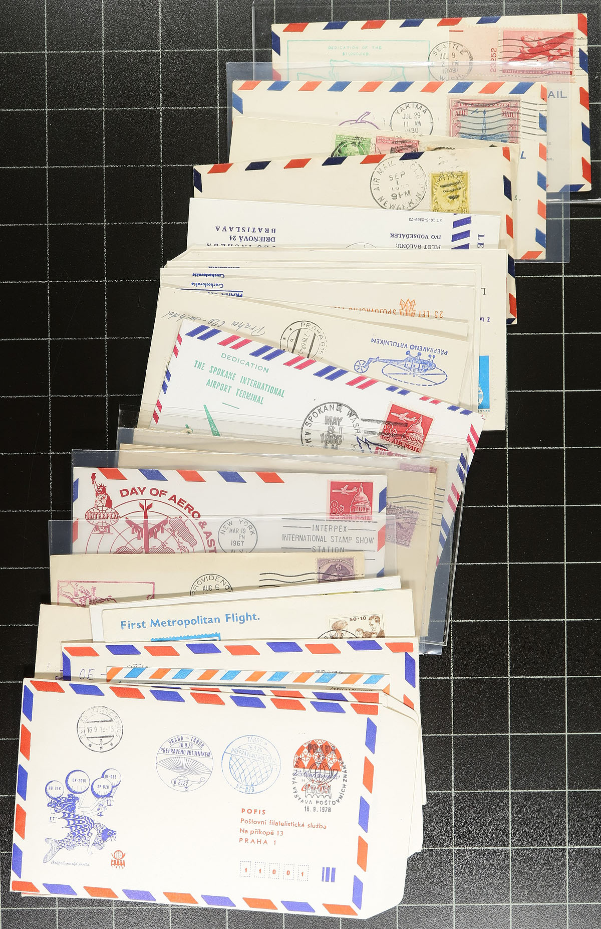 Airmail Covers. Nice group of roughly 125 Airmail covers, 1920's-1970's, including first flights, airport dedications, anniversary flights, helicopter and balloon flights, along with some pilot signed covers. We note better representation from the United States and Canada, along with some European and South America material. The lot also includes some interesting route maps from New Zealand giving town information, main routes and other points of interest. Some of the covers retail $10 to $20 each, making this a nice lot for collectors and dealers alike. Estimate =