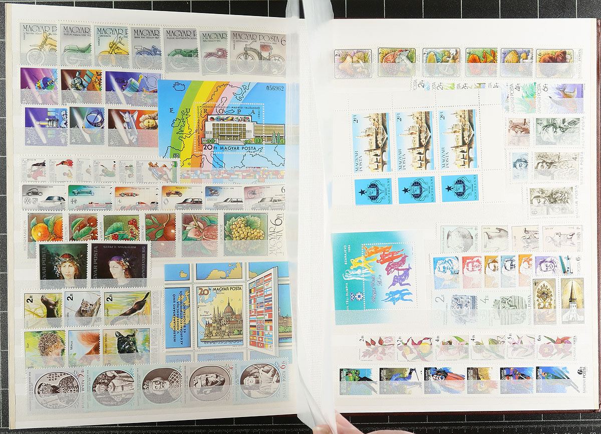 Collection of never hinged Hungary 1943-1985, containing well over 1,000 stamps in two stockbooks. This neatly organized collection ranges from Scott #600/2914, containing primarily sets, semi-postals, airmails, and many souvenir sheets. A spot check indicated sets and other material in the $3 to $5 range and up. A nice clean collection that begs to be continued, nothing several suitable thematic and topical subjects. Should be well worth our low estimate. Estimate =
