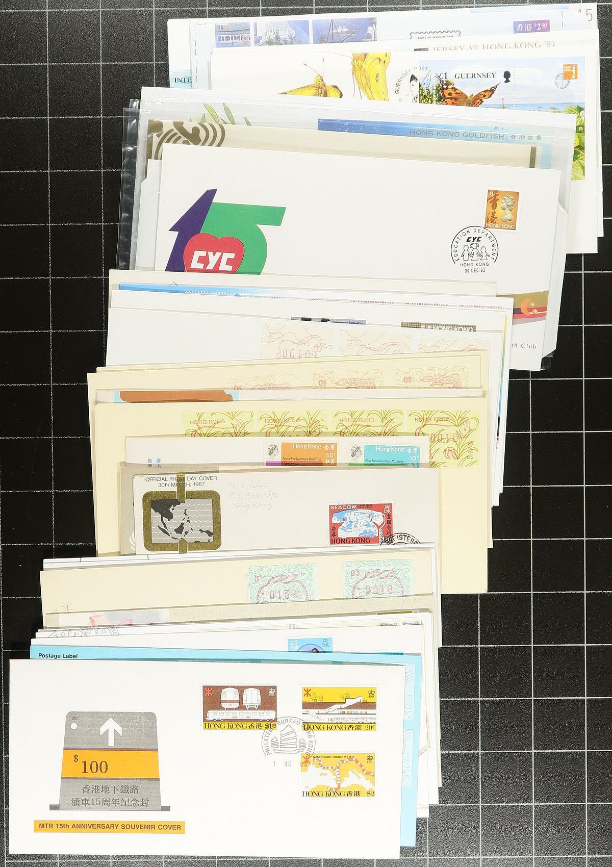 Commonwealth Covers. Nice group of roughly 225 British Commonwealth covers, 1940's-1990's, with representation from Hong Kong, New Zealand (some still in original post office packaging), Australia and Australian Antarctic Territory, Gibraltar, and a few other regions. We note mostly first day covers with singles, sets, and souvenir sheet frankings, along with aerogrammes, commercial letters, maximum cards, and some interesting material from the Hong Kong 1997 stamp exhibition, and more. We note a few covers cataloguing from $5 to $10 each. A nice lot for collectors and dealers alike. Estimate =