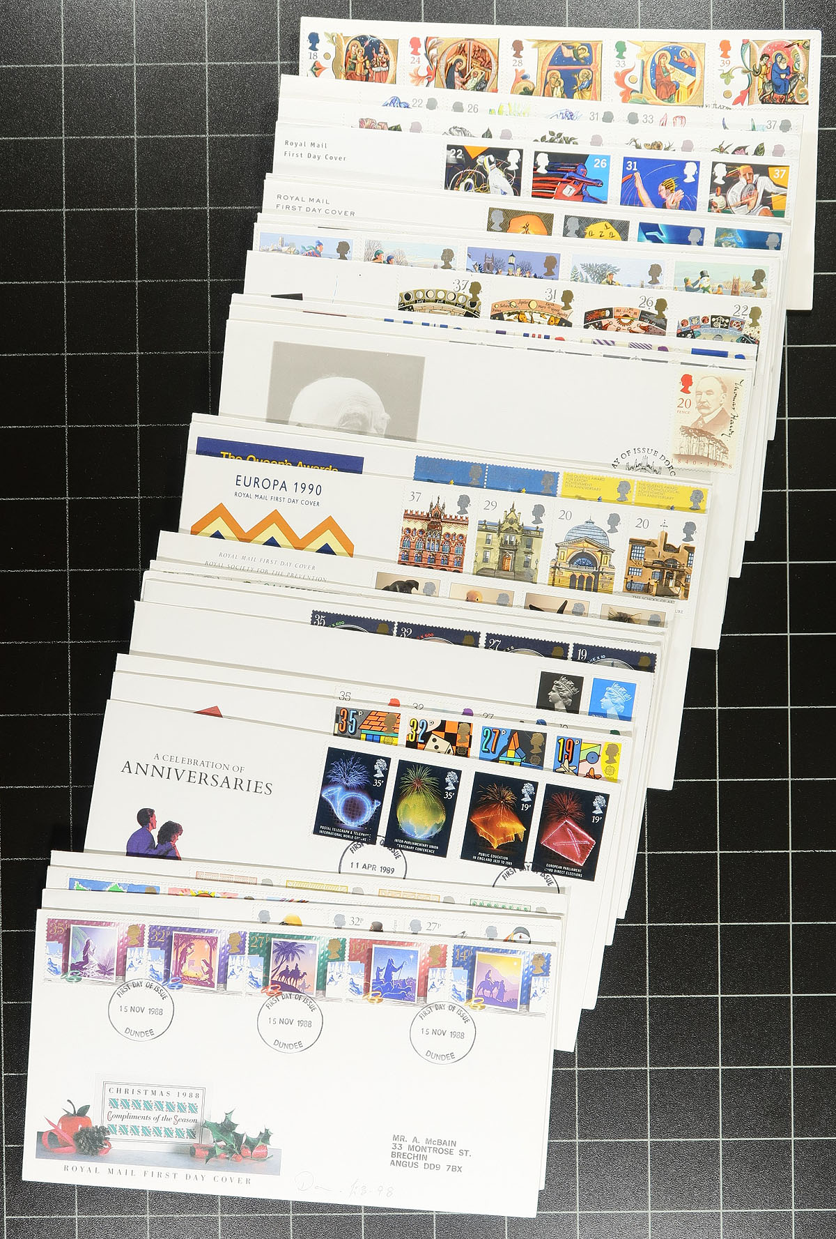 Nice group of roughly 425 first day covers, 1970's-2000's, containing roughly 300 Great Britain covers, and over 100 covers from Guernsey, noting singles, several sets, souvenir sheet, and booklet frankings. A spot check indicated some sets cataloguing $5 to $10 each (counted as used stamps). A nice lot for collectors and dealers, noting a few covers having a few bent corners, still a very nice lot. Estimate =