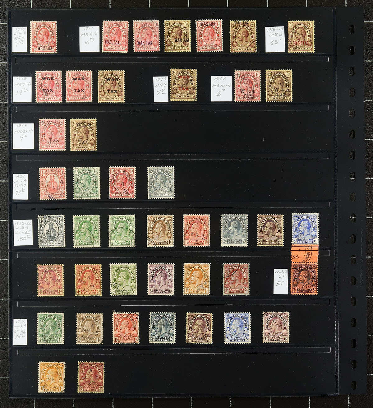 An early accumulation of mint and used, including Turks #3 (catalogue US$105.00), then Turks & Caicos from the 1900-1960 period. The used section consists of 102 stamps, 1900-1950 (#1/117), catalogue US$948.05. The mint section runs 1935-1960 (#71/135) with 54 stamps, catalogue US$280.00. Expect most of the earlier mint to be Hinged. A lovely selection here. Total 2026 Scott US$1,333.05 =
