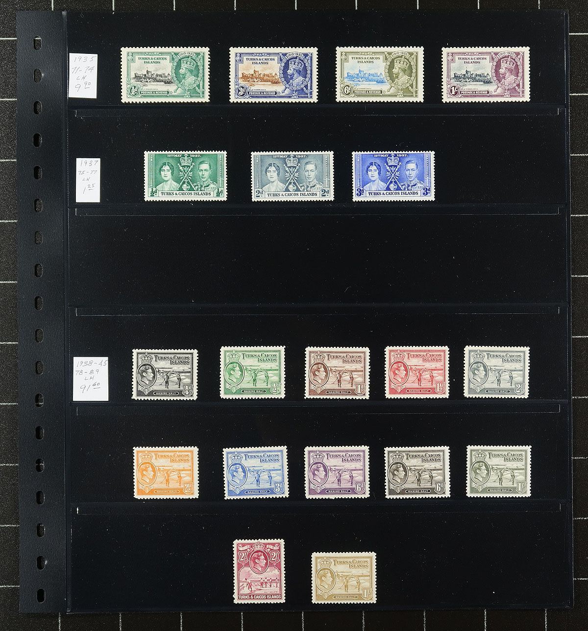 An early accumulation of mint and used, including Turks #3 (catalogue US$105.00), then Turks & Caicos from the 1900-1960 period. The used section consists of 102 stamps, 1900-1950 (#1/117), catalogue US$948.05. The mint section runs 1935-1960 (#71/135) with 54 stamps, catalogue US$280.00. Expect most of the earlier mint to be Hinged. A lovely selection here. Total 2026 Scott US$1,333.05 =
