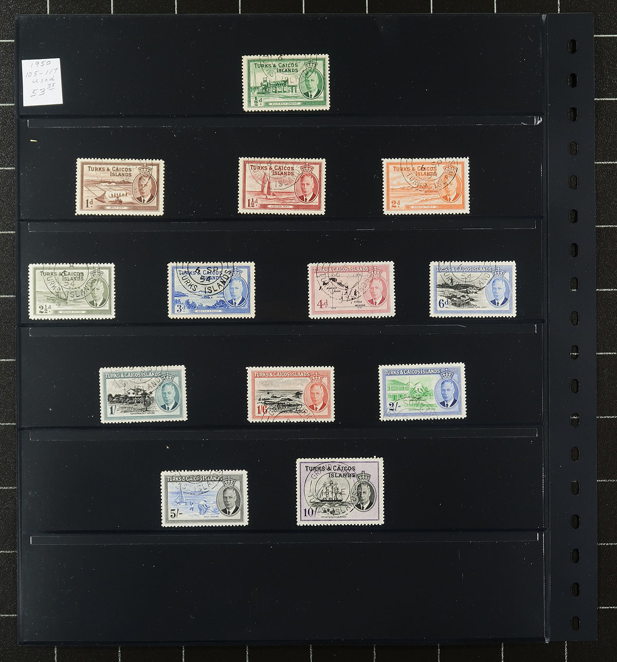 An early accumulation of mint and used, including Turks #3 (catalogue US$105.00), then Turks & Caicos from the 1900-1960 period. The used section consists of 102 stamps, 1900-1950 (#1/117), catalogue US$948.05. The mint section runs 1935-1960 (#71/135) with 54 stamps, catalogue US$280.00. Expect most of the earlier mint to be Hinged. A lovely selection here. Total 2026 Scott US$1,333.05 =