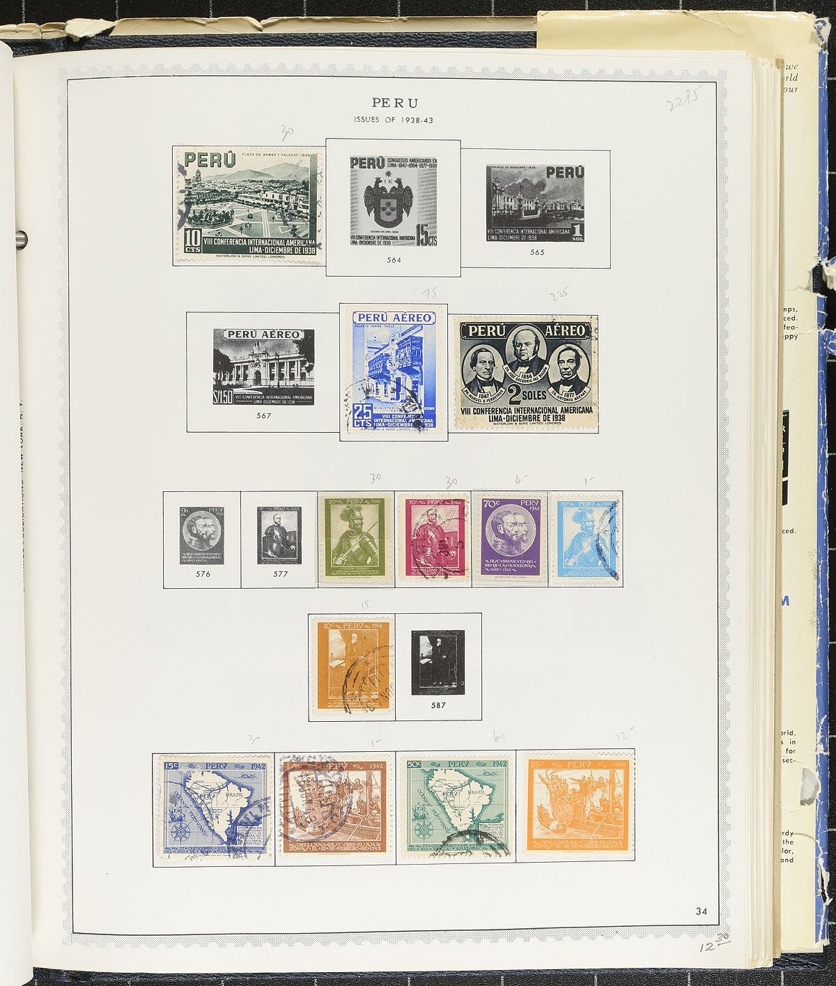 South America - Chile & Peru. An attractive old-time Minkus album, with pages for both countries running from the beginning to the mid-1980's. A mix of both mint and used, many of the mint (especially the later periods) are in mounts, leaving the stamps Never Hinged. The Chile section runs 1862-1985 (#11/693), with 1060 stamps including "back of the book" issues (catalogue US$1348.10). The Peru section runs 1858-1983 (#4/788) with 1017 stamps, including "back of the book" (catalogue US$1125.10). Expect the odd fault, some loose stamps that need placing, and perhaps the odd reprint in the earlier material. That being said, this is an excellent opportunity for any South American collector, with a still usable old-time album as a bonus. Total 2026 Scott US$2,473.20 =