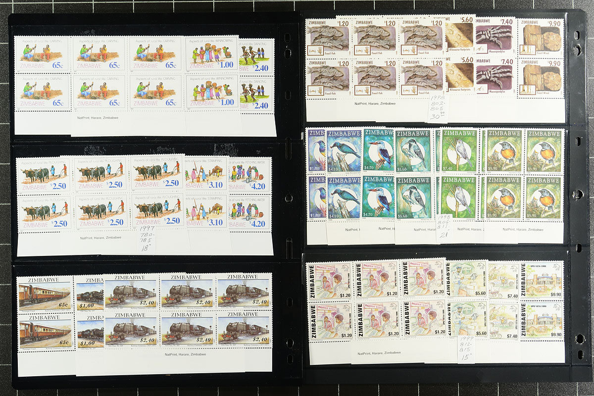 Stunning mint Never Hinged block / inscription block collection 1986-2001 (#529/902). Collected at the time of issue, and carefully stowed away, we won't see another collection of these anytime soon. Nicely organized on stockpage within a binder. Catalogued as stamps alone, but certainly worth more as inscription pieces. 2026 Scott US$1,997.40 =