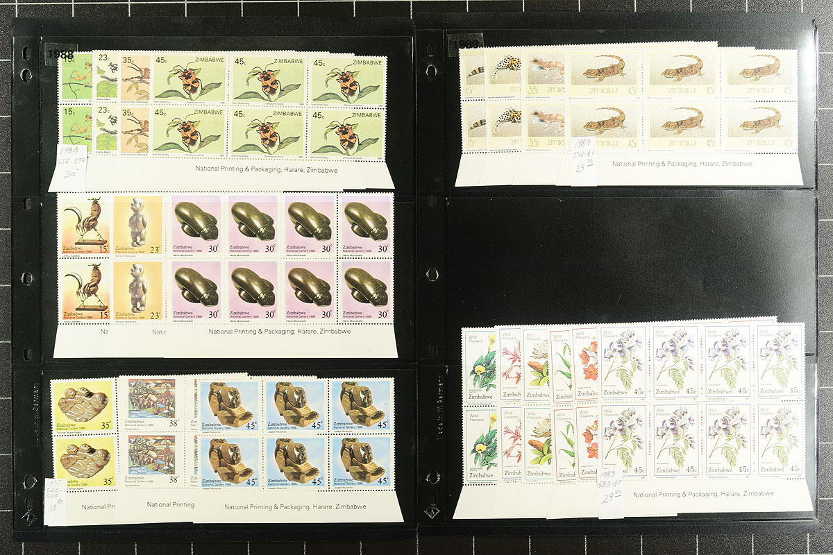 Stunning mint Never Hinged block / inscription block collection 1986-2001 (#529/902). Collected at the time of issue, and carefully stowed away, we won't see another collection of these anytime soon. Nicely organized on stockpage within a binder. Catalogued as stamps alone, but certainly worth more as inscription pieces. 2026 Scott US$1,997.40 =