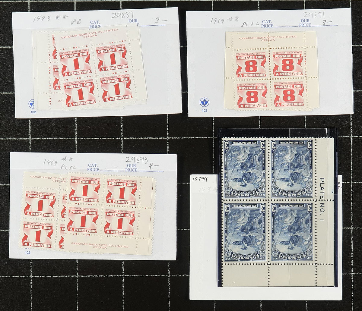 Mint Hinged/Never Hinged holding of singles, blocks, plate blocks and small groups, all assembled in 100x "102" cards. Lots of better items noted, including coils, early issues, "back of the book" and multiples. Well worth the reasonable estimated value. Estimate =