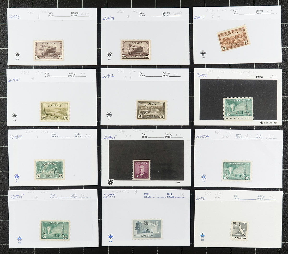 Mint Hinged/Never Hinged holding of singles, blocks, plate blocks and small groups, all assembled in 100x "102" cards. Lots of better items noted, including coils, early issues, "back of the book" and multiples. Well worth the reasonable estimated value. Estimate =