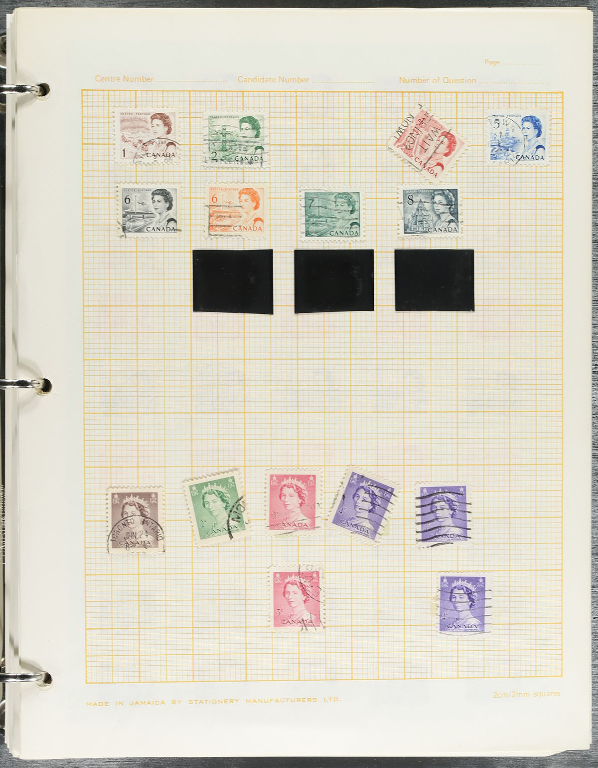 Bankers box of partial collections with wholesale quantities. Mostly used with a good selection of Small Queen’s and not stopping until about 2000, with a touch of material after that. Albums, stock pages, loose pages a couple of little stock books. Thousands upon thousands of stamps, with some cancel potential. Estimate =