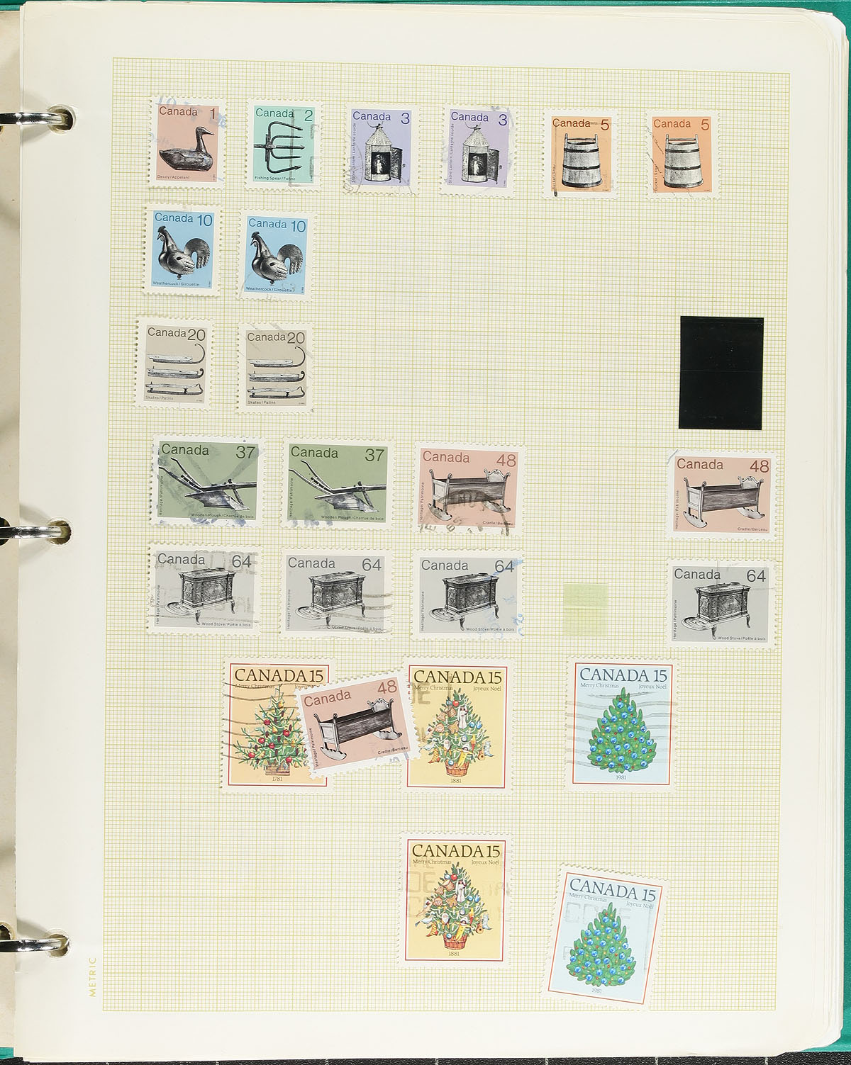 Bankers box of partial collections with wholesale quantities. Mostly used with a good selection of Small Queen’s and not stopping until about 2000, with a touch of material after that. Albums, stock pages, loose pages a couple of little stock books. Thousands upon thousands of stamps, with some cancel potential. Estimate =