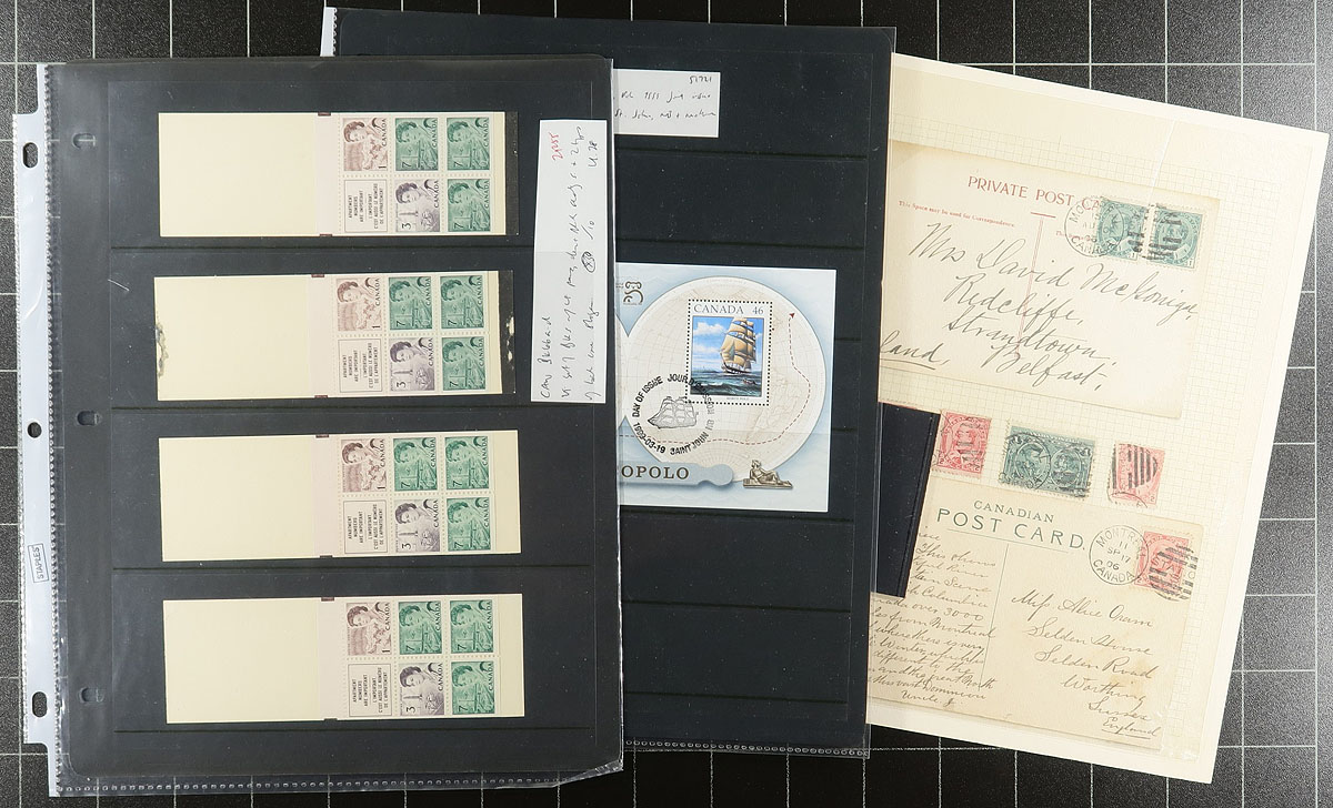 Bankers box of partial collections with wholesale quantities. Mostly used with a good selection of Small Queen’s and not stopping until about 2000, with a touch of material after that. Albums, stock pages, loose pages a couple of little stock books. Thousands upon thousands of stamps, with some cancel potential. Estimate =