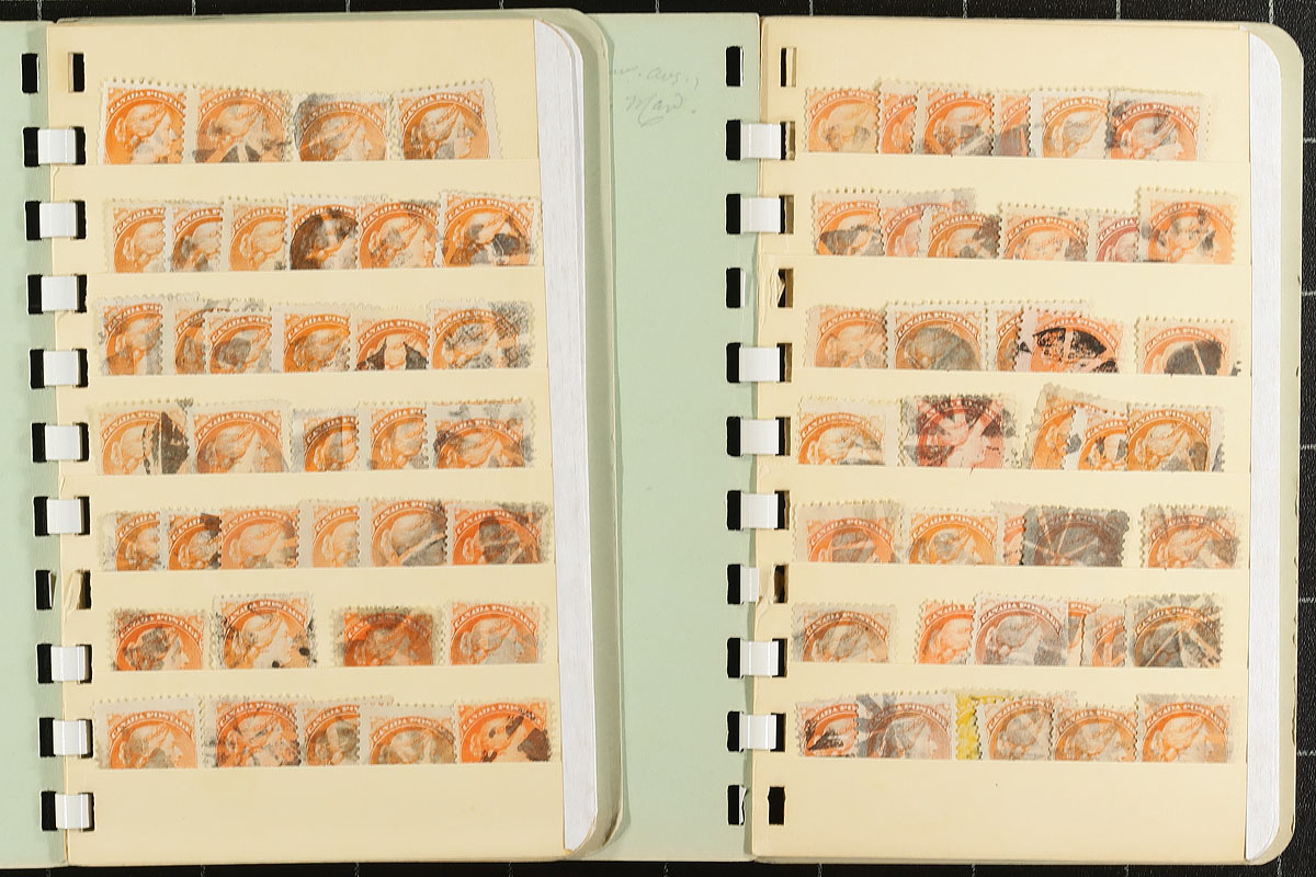 Bankers box of partial collections with wholesale quantities. Mostly used with a good selection of Small Queen’s and not stopping until about 2000, with a touch of material after that. Albums, stock pages, loose pages a couple of little stock books. Thousands upon thousands of stamps, with some cancel potential. Estimate =