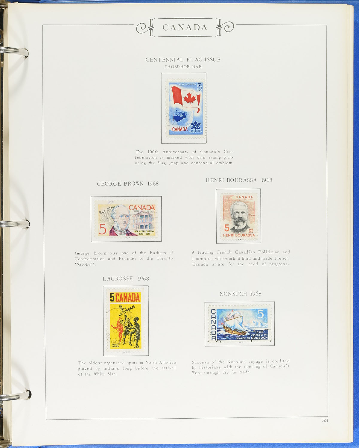 Bankers box of partial collections with wholesale quantities. Mostly used with a good selection of Small Queen’s and not stopping until about 2000, with a touch of material after that. Albums, stock pages, loose pages a couple of little stock books. Thousands upon thousands of stamps, with some cancel potential. Estimate =