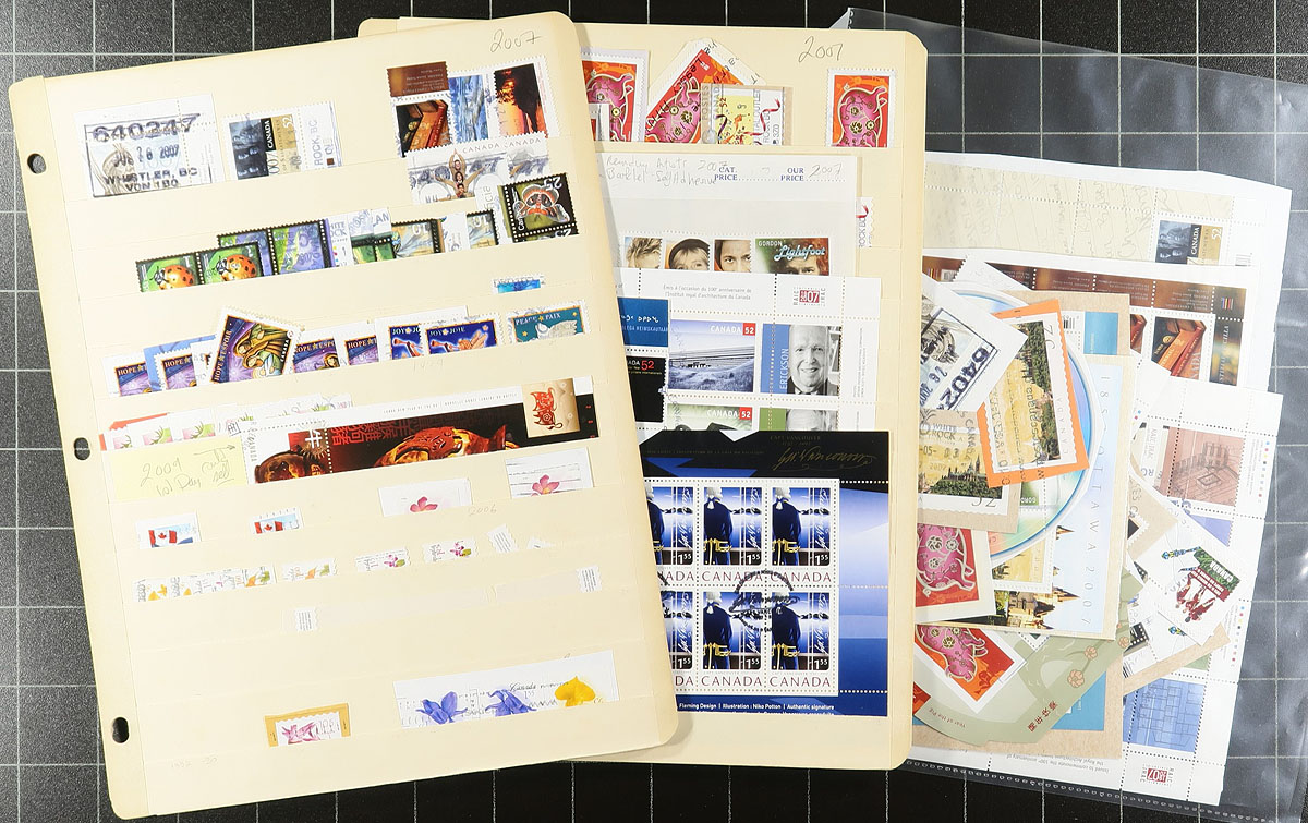 Bankers box of partial collections with wholesale quantities. Mostly used with a good selection of Small Queen’s and not stopping until about 2000, with a touch of material after that. Albums, stock pages, loose pages a couple of little stock books. Thousands upon thousands of stamps, with some cancel potential. Estimate =
