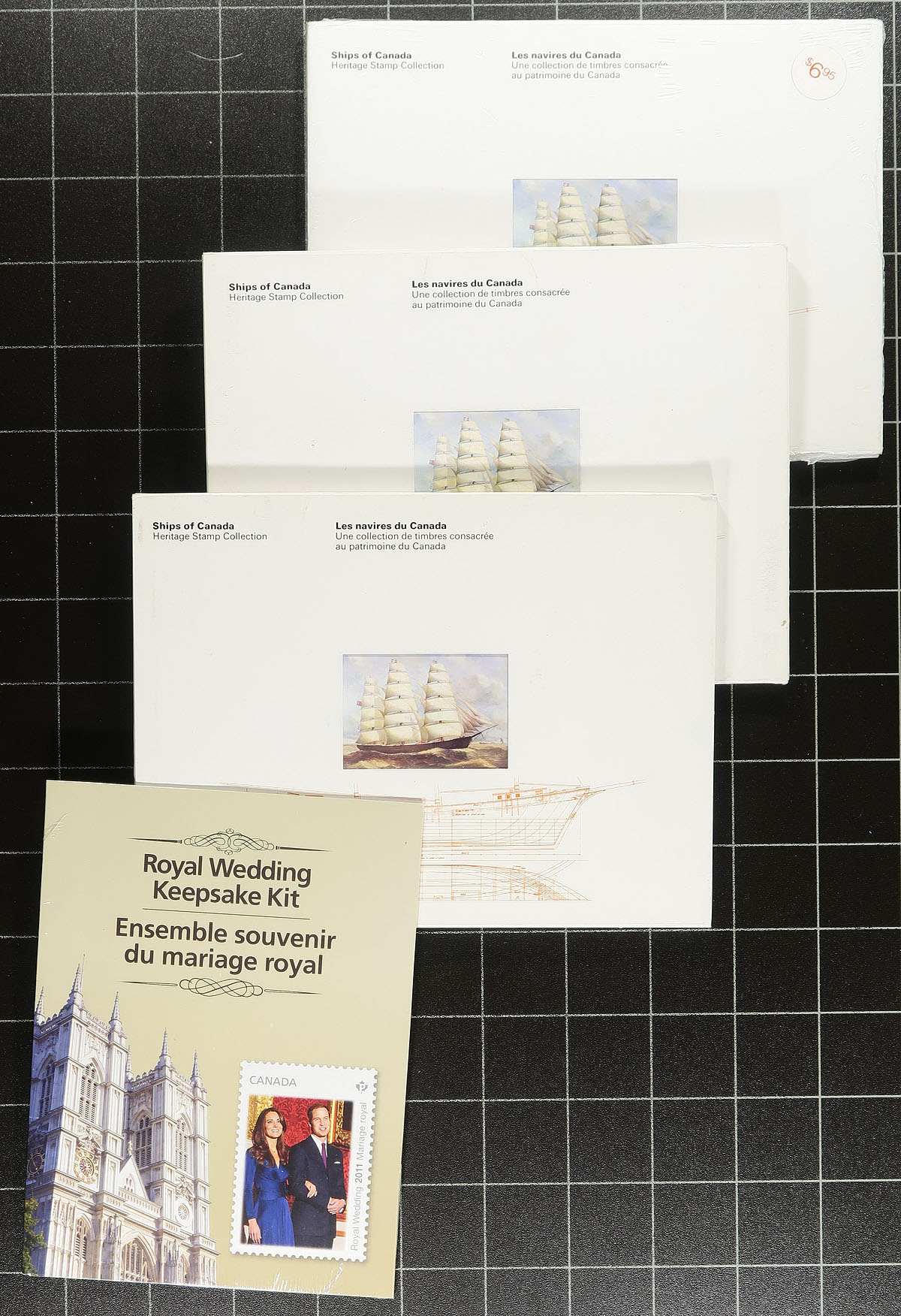 Post Office issued products consisting of Thematic Collections (mostly unopened), presentation cards, QEII anniversary folders and a whole host of various Canada Post products (mostly 1967-2012, with none of the large format annual collections). Often overlooked in their day, many produced in small quantities, once these became listed in Unitrade, demand increased and the lack of supply became apparent. There is a bit of minor duplication here, and a total catalogue value that is likely several hundred dollars. Fills a medium sized box. Estimate =