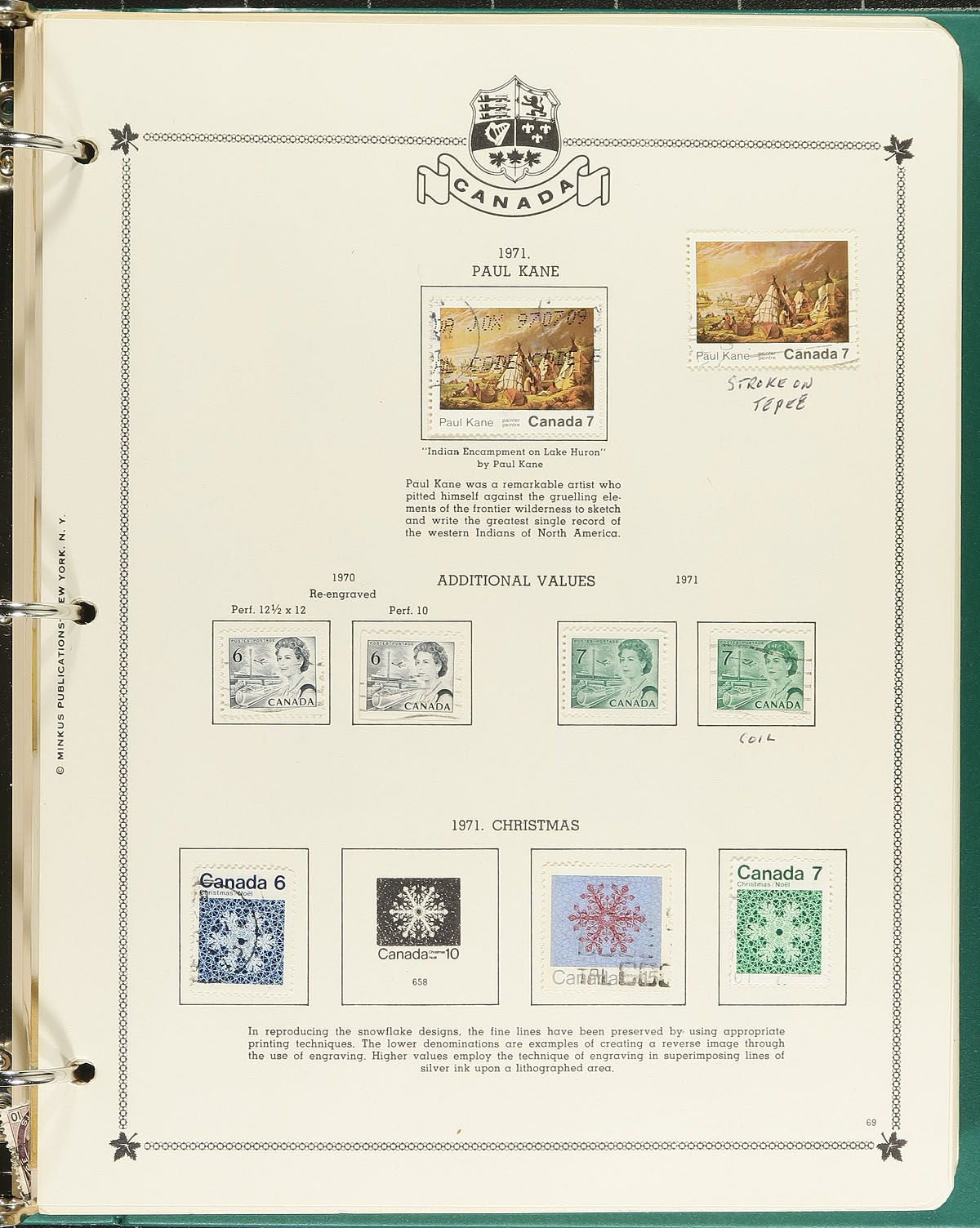 U-Haul box with seven collections, or partial collections in an assortment of binders and albums. Mostly used, going back to the Small Queen era and running into the 1990's, this group offers the chance for cancel and variety hunters, collection builders and people looking to pick up an older album or two in good condition (e.g. Minkus, Lighthouse). A few thousand stamps, lots of catalogue value and some duplication. Overall condition looks to be pretty good. Many of these albums were once individual auction lots (and haven’t been touched since). Estimate =